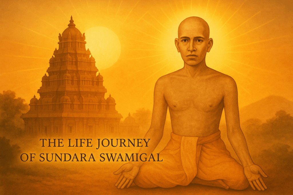Sri Sundara Swamigal was a beacon of divine grace, whose very presence uplifted all who came near. His life was filled with acts of compassion, restoring life, healing sorrow, and guiding devotees with gentle wisdom. With the sacred power of mantra and vibhuti, he revealed the unseen strength of faith. Wherever he travelled—be it Kashi, Chidambaram, or Thiruvaiyaru—his words carried the fragrance of devotion and knowledge. Devotees witnessed him draw flames into cloth, turning simple rituals into divine wonders. He meditated in solitude, yet his silence spoke to thousands of hearts. Miracles unfolded naturally around him, not as displays of power, but as reminders of Lord Shiva’s boundless love. Through teaching Vedanta and empowering even children and women, he spread light beyond tradition. His foresight saved villages, his compassion touched families, and his blessings ignited faith in generations. To this day, Sundara Swamigal’s legacy shines as a guiding lamp of spirituality and miraculous grace